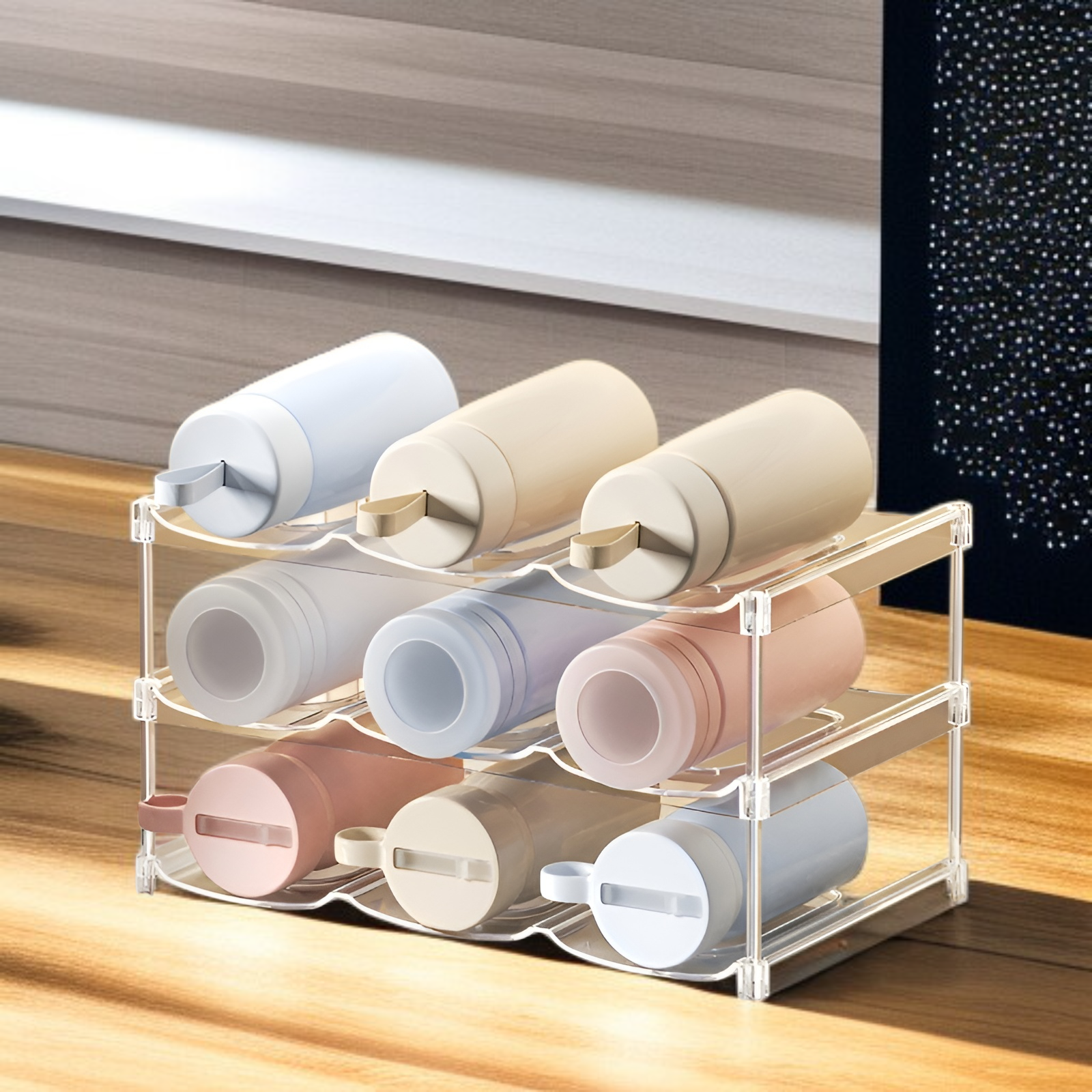 Organizador de tazas Thermos, soporte transparente apilable para vasos,